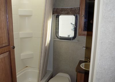 rear bath with shower and lots of storage