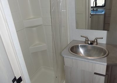 large side bath with shower and lots of storage